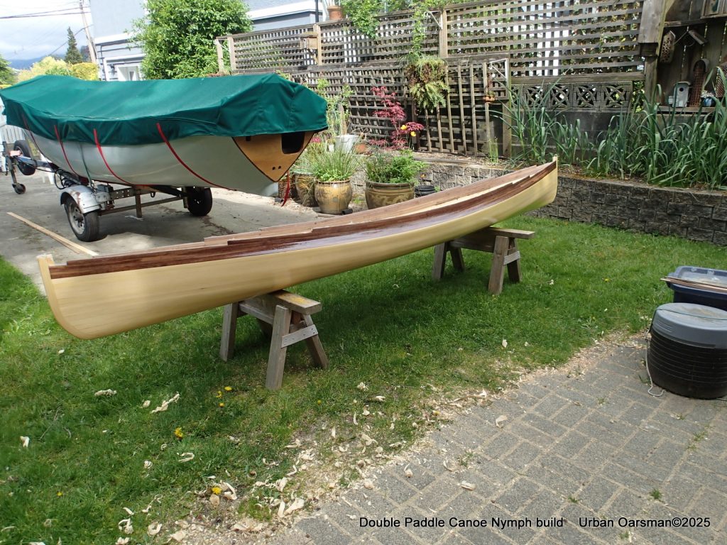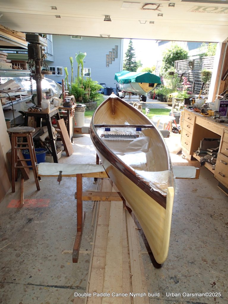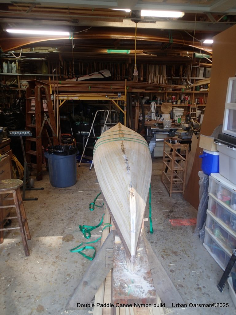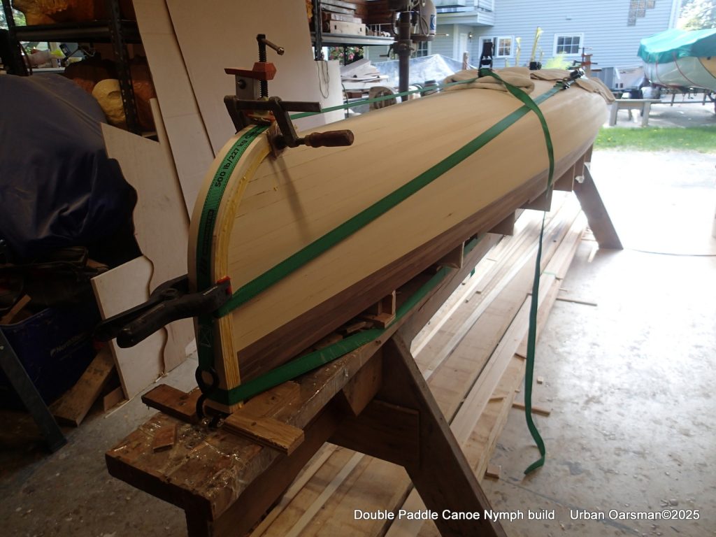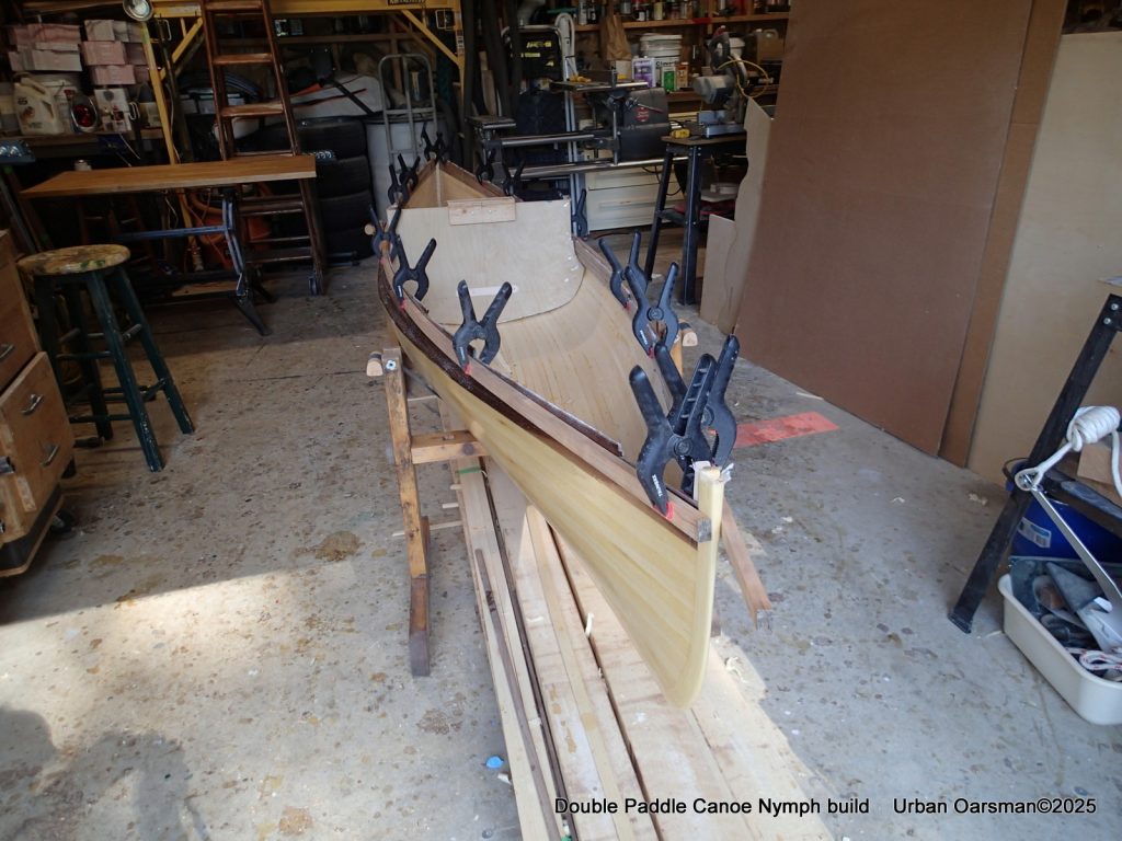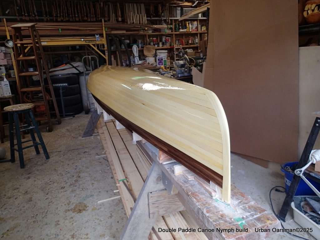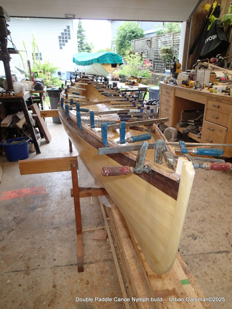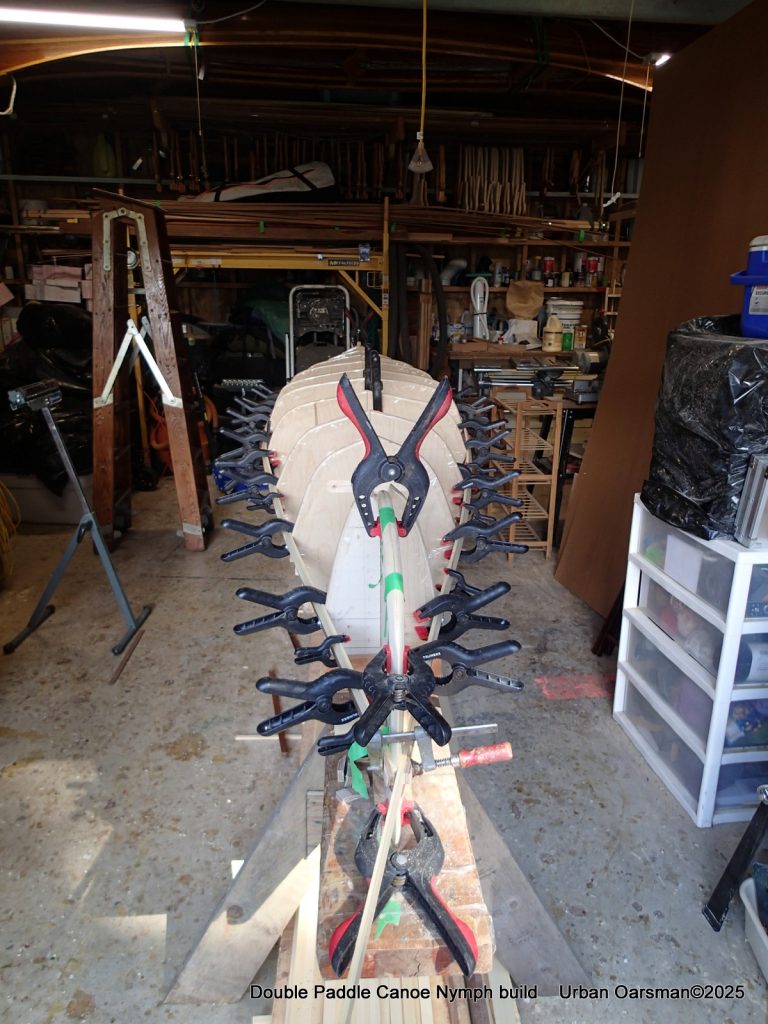 The tops of the gunnels will get a coat of epoxy and cloth…makes it easier to put the canoe onto roof racks without damaging the gunnels.