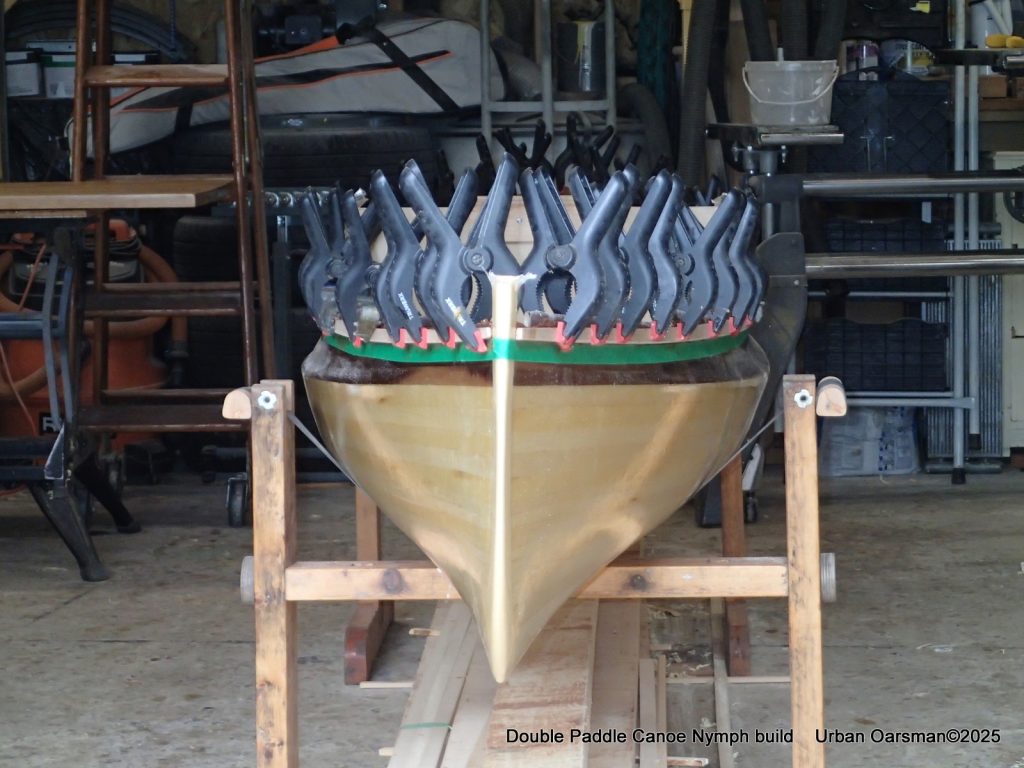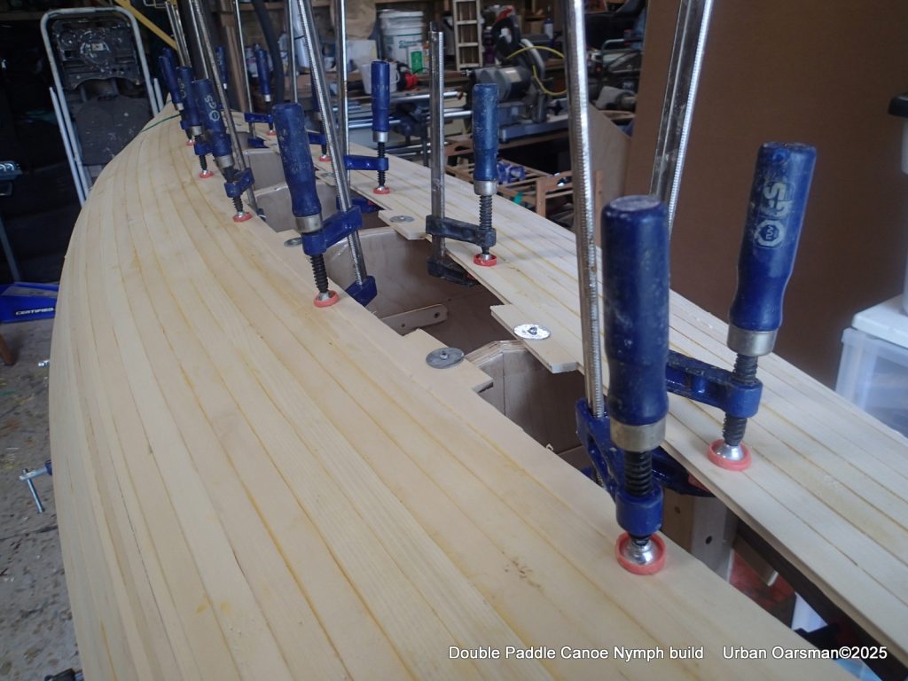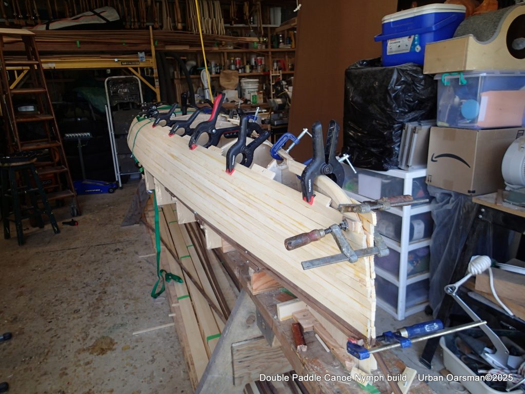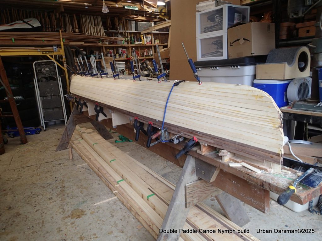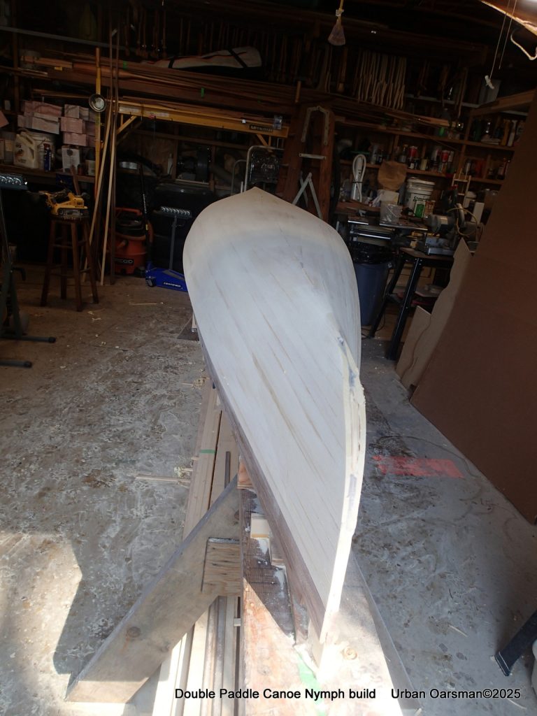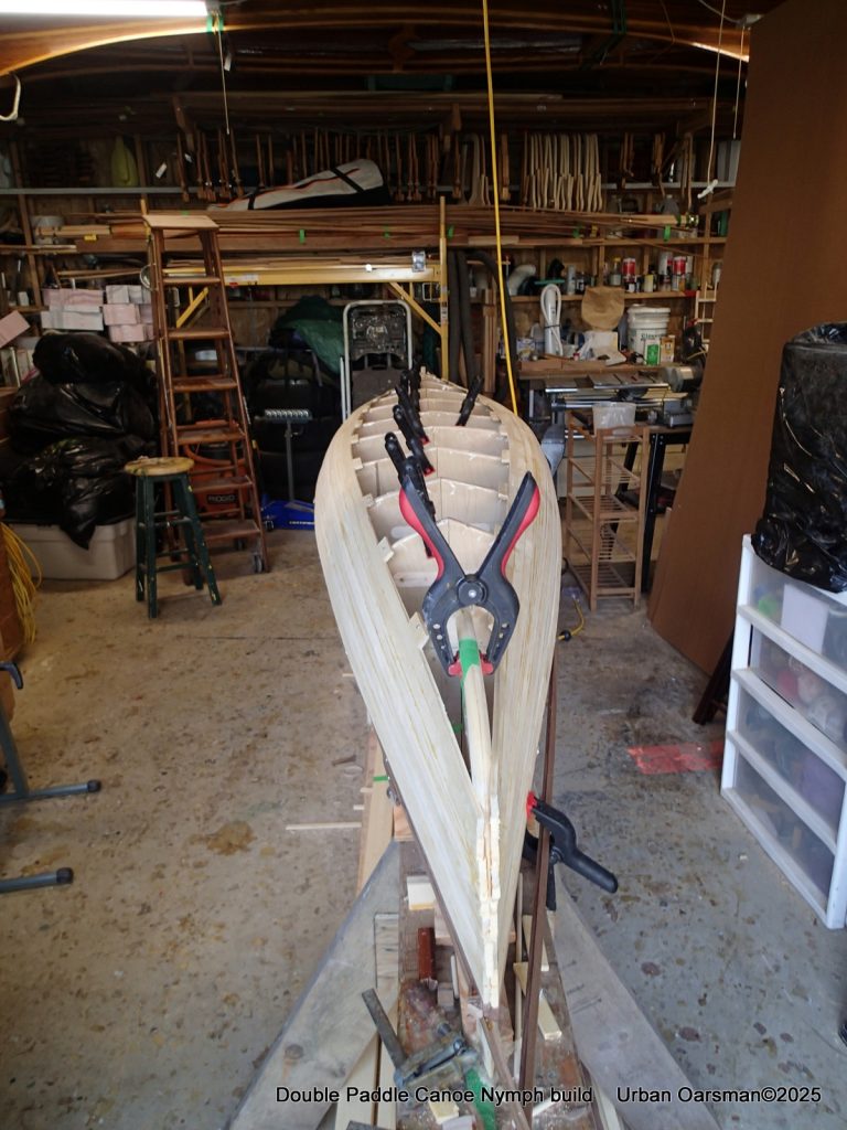 These are the last few strips that go past the stem. After this I will be planking in the “football”