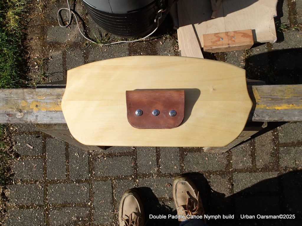 This piece of leather and snaps will hold the seat back to the thwart. It is somewhat adjustable.