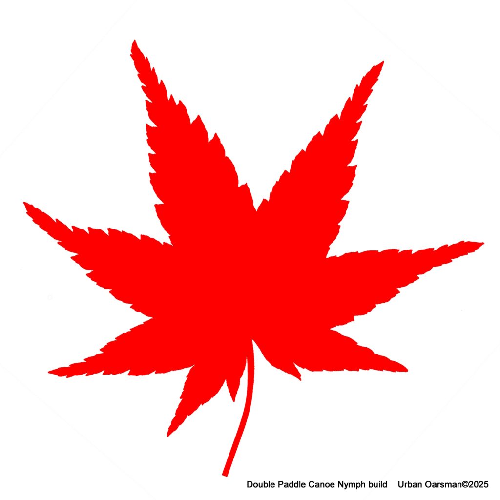 The foredecks need some decoration. I scanned and printed onto onion skin paper a maple leaf from my garden. I then epoxied the picture onto the two decks, under the cloth.