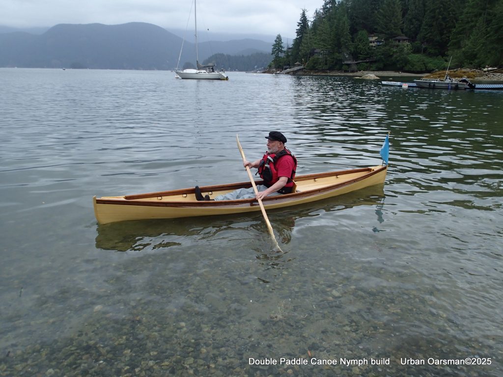 I am unsure as to how long my double paddle should be, so, while the varnish dries, between coats, I make a second longer double paddle to go with the double canoe.